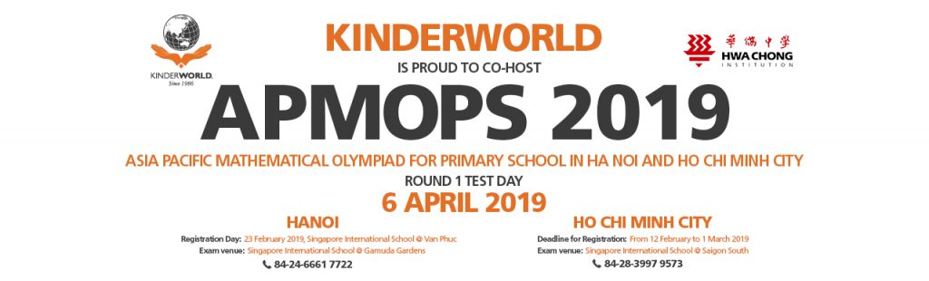 I. General Information KinderWorld Education Group and Hwa Chong Institution will once again co-host the Asia Pacific Mathematical Olympiad for Primary Schools (APMOPS) 2019 in Vietnam this year. Ever since APMOPS was introduced in Vietnam in 2009, many Vietnamese students have achieved various awards as shown below: 2010: – 2 students were ranked 11th and […]