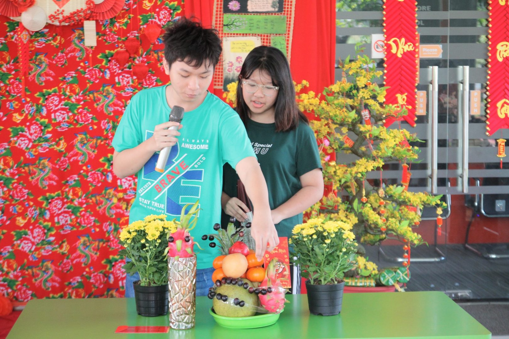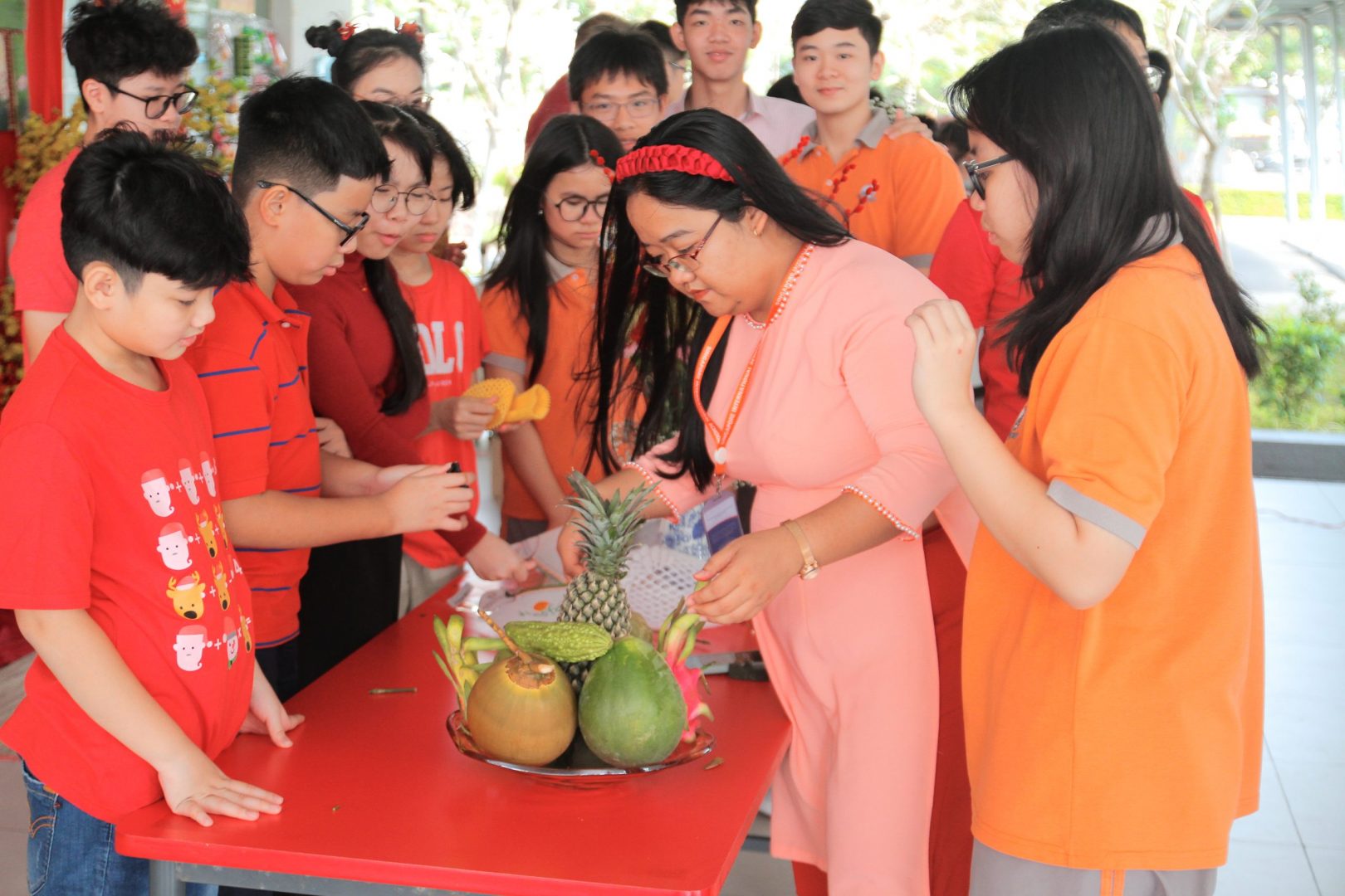 In the vibrant Tet 2024 celebration at the Singapore International School at Can Tho, students embraced tradition with gusto. The festive atmosphere resonated with laughter and excitement as they engaged in a myriad of activities. From the lively hunt for the symbolic baby piggy to the spirited competition of pulling the spathe, joy-filled every corner. Intricately crafted fruit trays adorned the tables, showcasing the artistry and creativity of the students. Amidst the fragrant blooms meticulously arranged, melodies of traditional songs filled the air as students danced with grace and sang with passion, honoring the spirit of Tet with enthusiasm and reverence. ️